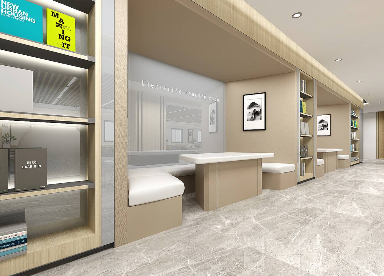 在保持傳統圖書館功能的前提下,以莊重、大氣、現代化為設計原則,針對圖書館大廳及閱覽室兩部分,既有莊嚴、明亮的大廳設計也有輕松、活潑、舒適的閱覽室設計,為國家行政學院圖書館打造具有學院形象、圖書閱覽、學員交流、教研成果的互動展示空間。